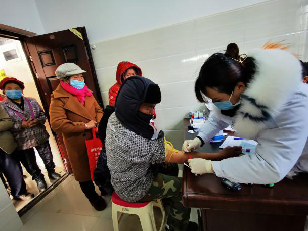 此次随访共有76名患者接受了诊视,入户随访7人,106人领取药品,76人采血,医院工作人员还发放了爱心杯子、手消毒液67份。