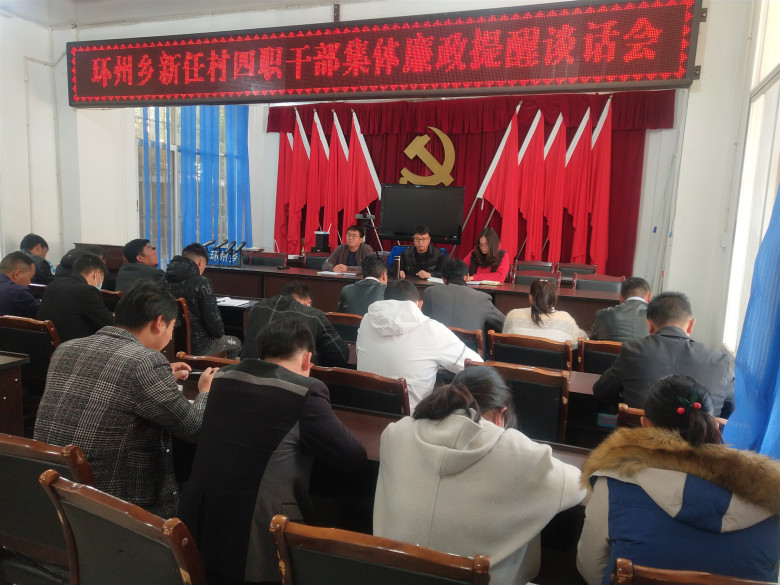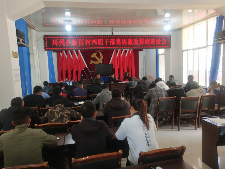 为切实增强全乡村级干部遵规守纪意识,在全乡范围内营造积极向上、风清气正的干事创业氛围,环州乡于3月1日召开新任村四职干部集体廉政提醒谈话会议,全乡8个村委会30余名村干部参加了会议。