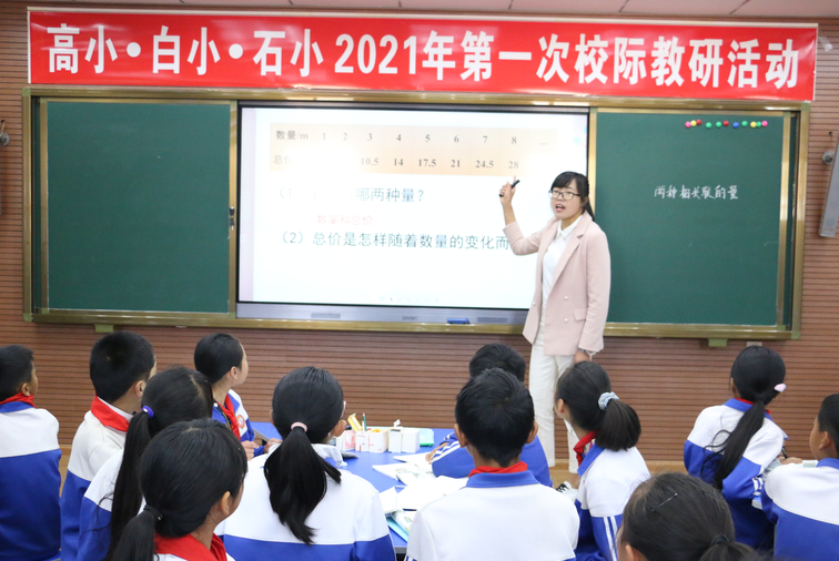 2021年3月26日上午,白路小学、石腊它小学、猫街小学、环州小学等学校的校长、教导主任及六年级教师赴高桥小学开展校际交流教研活动。县教育体育局教研室胡朝升老师、刘洪昌老师,楚雄师院附小骨干教师李正荣老师以及近城小学骨干教师唐琼老师莅临指导。