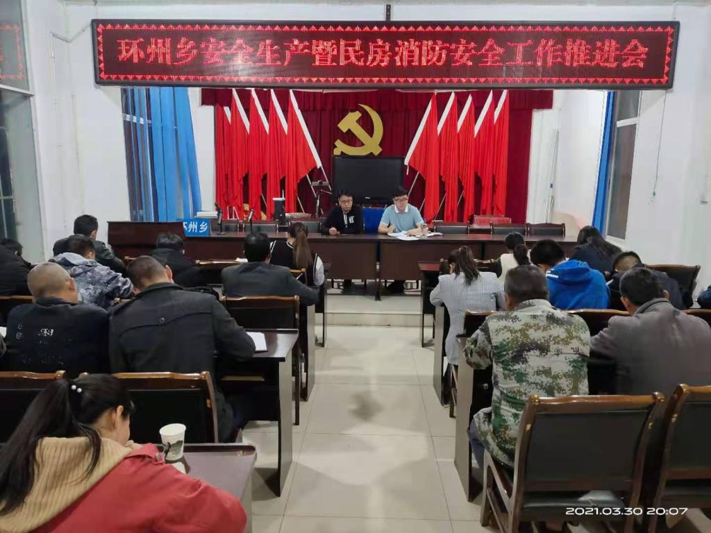 30日晚上八点环州乡党委政府召开了环州乡安全生产暨民房消防安全工作推进会,全体干部职工,村委会总支书记参加会议。会上杜乡长将今年以来我县发生的安全生产事件进行通报并强调人民生命安全大于天,重于泰山,安全生产工作务必要引起高度重视,切实把工作落实落细,并对下一步安全生产工作做了详细的安排和部署,要求应急办、派出所、农推中心等部门负责人切实抓好安全生产摸排工作。李书记提了三点要求:一是提高政治站位,务必认识到安全生产的重要性、必要性、紧迫性。二是明确责任,抓好安全生产大排查。三是统筹兼顾,继续抓好当前几项重点工作。