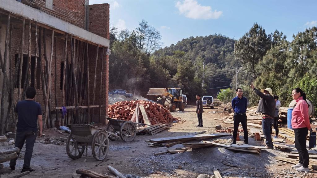 付平海书记带领大家来到平地村委会木高古村,实地查看木高古红色旅游、党史党性教育基地项目建设情况,并指出,木高古项目是今年建党一百周年的献礼工程,要加快项目施工进度,保证7月1日揭牌仪式能顺利进行,他还特别强调,在施工过程中要时刻注意施工安全,确保项目圆满完成,为建党一百周年献礼。