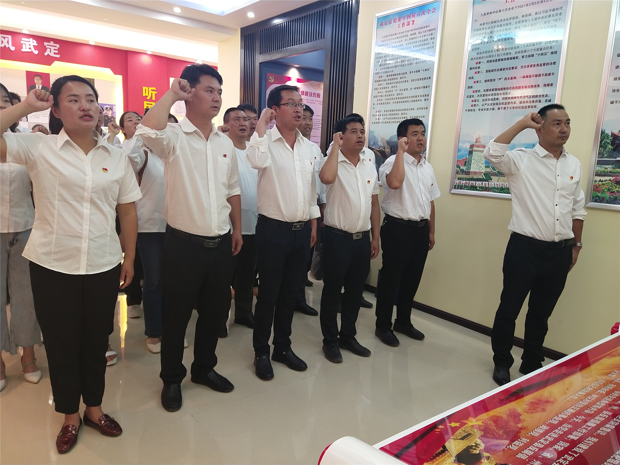 参观完毕后,镇党委书记张美权同志带领全体党员干部进行廉政承诺宣誓。
