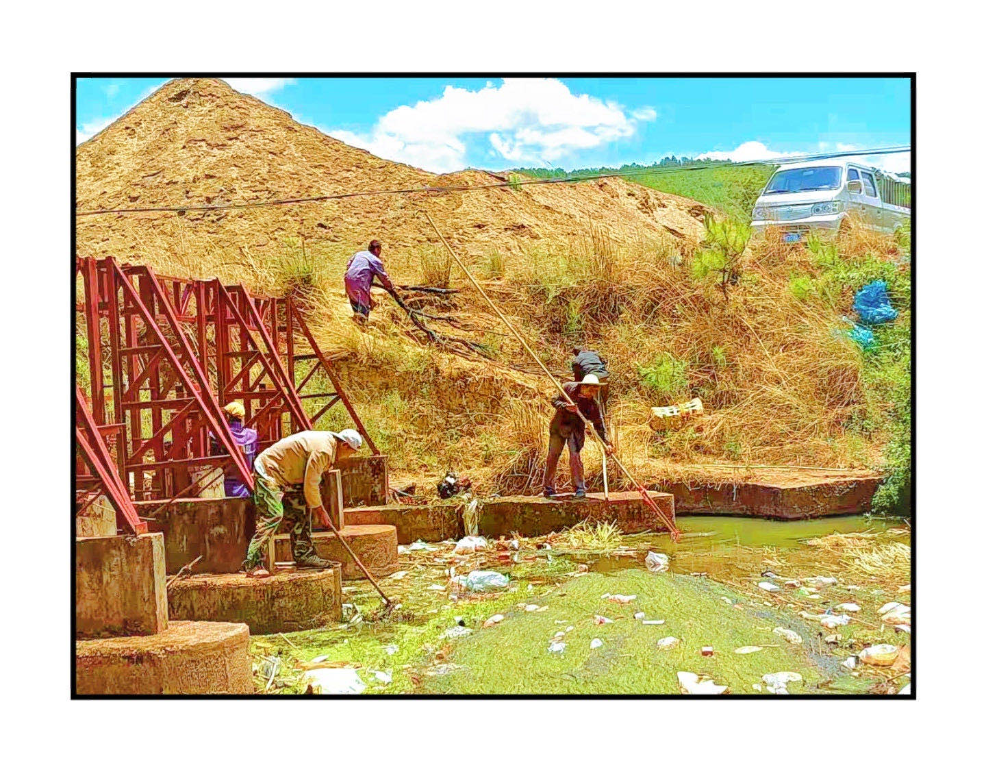 制定措施 综合整治。高桥镇持续开展清河任务,切实推动“见河长”到“见行动”的实质性转变。对河道内影响行洪的障碍物进行集中清理;对非法排污口进行集中封堵;对河道漂浮物和腐烂水萍进行集中打捞;对沿岸垃圾进行集中清除;对河道垦植进行集体铲除。参与人数达600余人,投入车辆45辆次,清理垃圾70余吨;修建垃圾池6座,投入资金6万元。