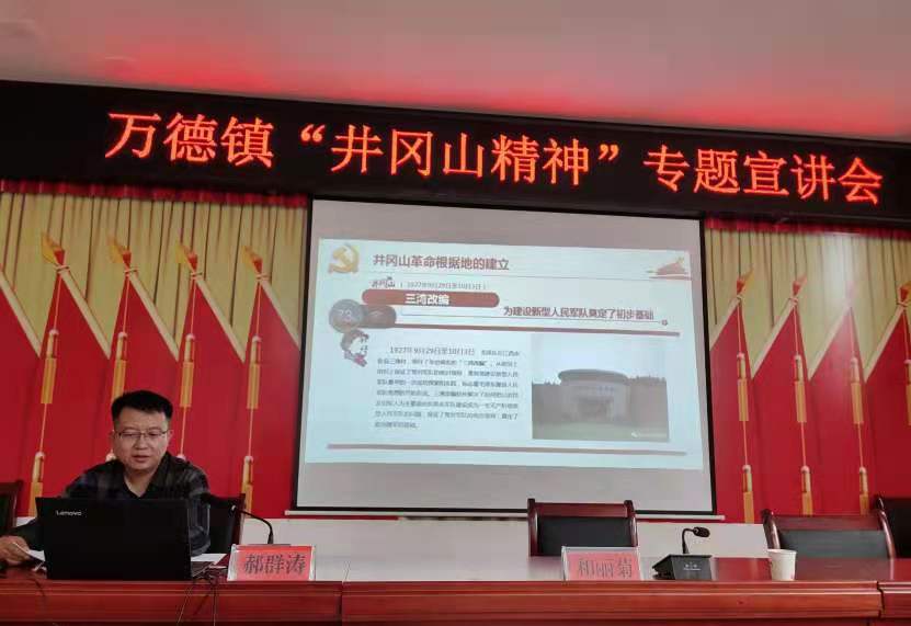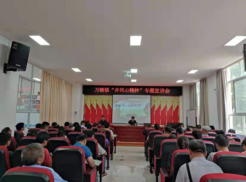 2021年5月18日,万德镇召开“井冈山精神”专题宣讲会,镇全体党政班子成员,镇级各站(所、中心)负责人,中小学、烟叶站、卫生院、信用社负责人,8个村党总支书记、村委会主任共计90余人参加会议。万德镇党委副书记和丽菊主持会议,县委宣传部副部长、县融媒体中心主任郝群涛应邀作宣讲。