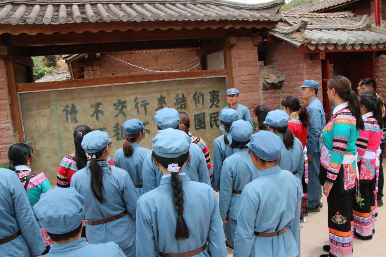 木高古红军长征体验路段的终点便是木高古彝寨,进入寨子映入眼帘的便是——“夷民们同红军联合打龙云去”“夷民们团结起来实行不交租不还债”两条红军标语。镇党委书记付平海向大家介绍这两条标语的历史。在参观完红军标语后队员们表示从标语的字里行间既感受到红军坚定的信念和奋斗不息的革命精神,也感受到红军爱国为民的情怀和体恤百姓疾苦的大爱。