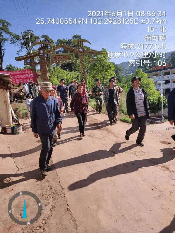 插甸镇在宋春宇镇长等领导组织下,自然分局、镇级防汛抗旱领导小组成员单位、镇民兵排全体、老木坝村委会四职、所有地质灾害监测员、新福村受威胁的群众共96人于2021年6月1日上午午8点30分在老木坝村委会新福村进行山洪地质灾害应急演练.