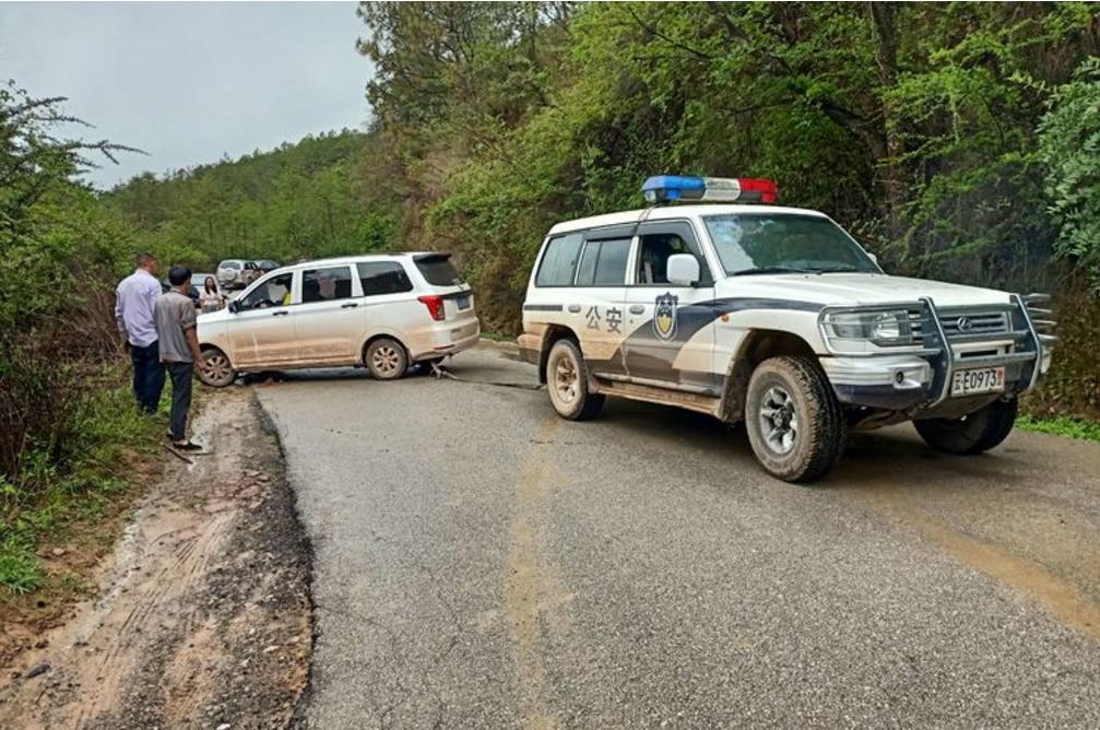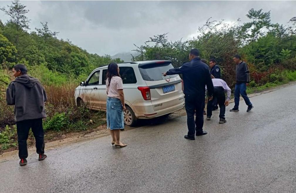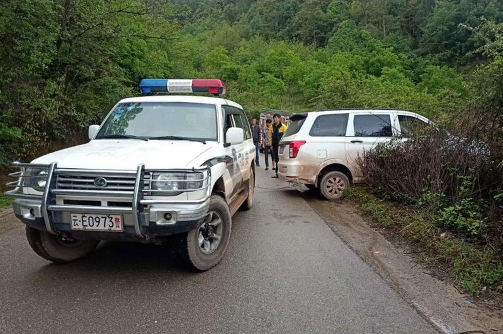 2021年6月11日下午,全天阴雨绵绵,发窝派出所民警辅警出警回程途径长己线大永西路段时,偶遇一辆因下雨路滑不慎驶离路面车辆,民警辅警顾不上雨淋,立即开展救援工作,一边疏导交通,一边了解有无人员受伤的情况。经核实,由于下雨导致路面湿滑驾驶员因操作不当才导致车辆滑驶出路面被困,受困车辆底盘抵在凸出来的硬土上,不得动弹。民警辅警在救援过程中,路过的热心驾驶员、群众也积极主动帮忙,通过手推、警车拽,经过半个多小时不懈努力,成功将被困车辆拖上公路。