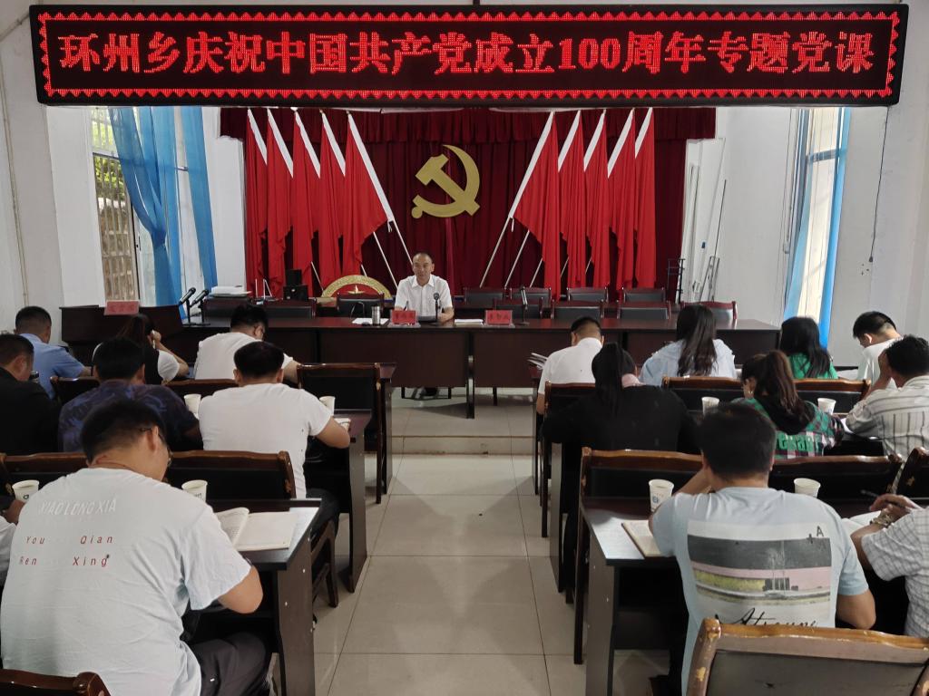 为认真贯彻落实中共武定县委办公室印发«武定县庆祝中国共产党成立100周年专题党课讲授工作方案»的通知,6月17日,县委常委、县纪委书记、县监委主任、环州乡党委第一书记董尚高到环州乡讲授庆祝中国共产党成立100周年专题党课,环州乡党政班子成员、政府内全体干部职工、8个村委会四职干部、驻村工作队第一书记,各站所中心负责人共计80余人参加。