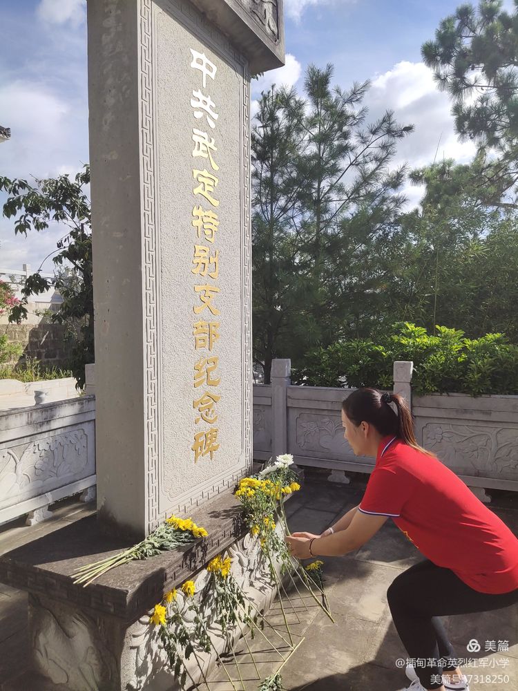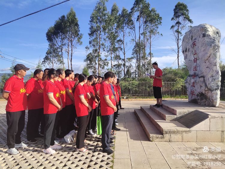2021年是中国共产党成立100周年。为认真贯彻落实中央和省州县党委关于庆祝中国共产党成立100周年活动的部署安排,深入贯彻落实《新时代爱国主义教育实施纲要》,突出发挥爱国主义教育基地在庆祝中国共产党成立100周年宣传教育中的重要作用,扎实有序开展好武定县庆祝中国共产党建党100周年活动,结合实际广泛开展“永远跟党走”系列宣传教育活动。 插甸革命英烈红军小学党支部于2021年6月19日到县委党校中共武定特别支部纪念碑、边纵西进部队尖山铺战斗遗址等爱国主义教育基地组织开展以“传承红色基因 弘扬奋斗精神”主题党日活动。