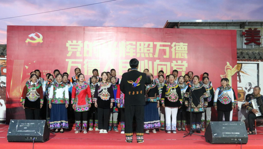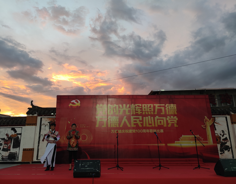 2021年6月24日的下午,万德的天空被一抹抹金色的晚霞装点得格外绚烂。在这绚烂晚霞的映照下,万德镇举办的题为“党的光辉照万德·万德人民心向党”的庆祝中国共产党成立100周年歌咏比赛拉开了序幕。