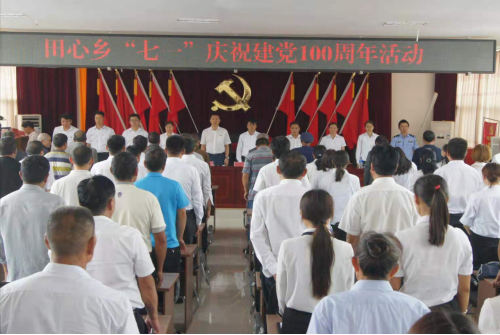 6月28日下午2:30,田心乡党委在乡人民政府大会议室五楼举行庆祝建党100周年活动。