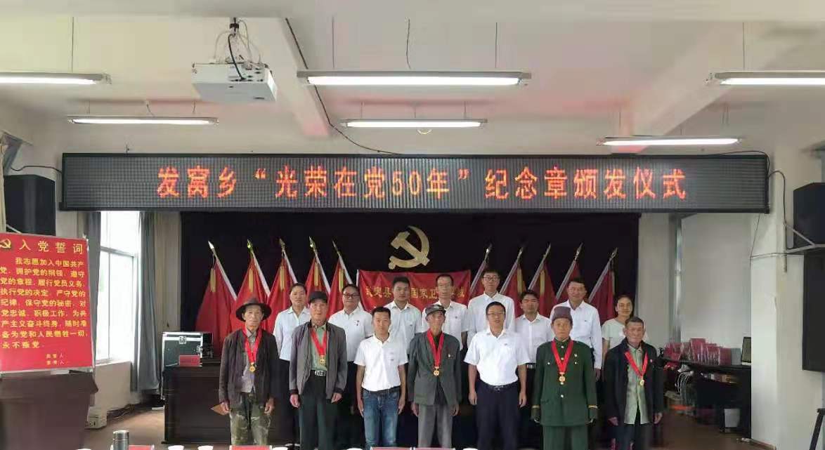 2021年6月28日下午,发窝乡党委政府举行“光荣在党50年”纪念章颁发仪式,向我乡党龄50年以上的老党员颁发纪念章。