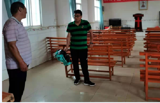 在滔谷教堂,乡党委书记李智成、乡纪委书记杨军现场查看了教堂内外的房屋安全情况、消防设施情况、“五进教堂”情况,了解教职人员生活情况、宗教活动开展情况。滔谷教堂负责人马克安详细介绍了教堂的基本情况、教职人员授课情况、信教群众人数等。