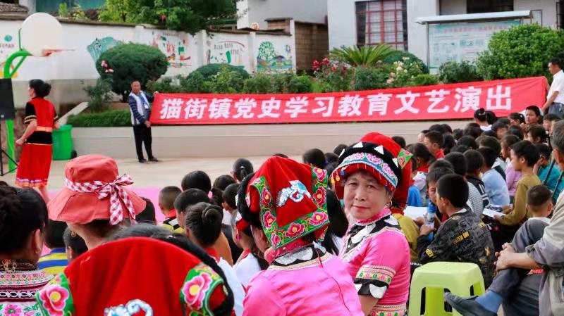 “文艺课堂”形象讲。依托新时代文明实践中心、所(站)、村级综合文化服务中心等,联合全镇19支群众文艺队,通过编排群众喜闻乐见、突出主题的舞蹈、红歌、故事会等文艺节目进乡村演出,让群众在欢声笑语中对党的知识入脑入心。目前,《猫街人民心向党》《脱贫后的幸福生活》等一批红色文艺节目深受群众好评。
