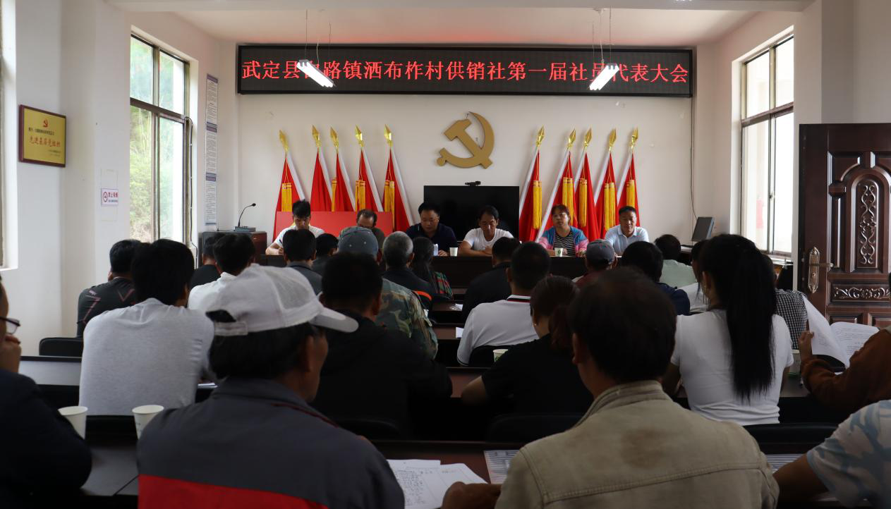 2021年7月16日,在武定县供销合作社的支持和指导下,武定县白路镇首家村级供销社第一届社员代表大会开幕了。村党总支和村委会领导及来自全村在产业发展中具有代表性的农民专业合作社社员、种养殖专业户、个体经营户中的35名代表参加了会议。县供销社党组成员、理事会副主任张丽翠、普建雄等人到会指导。会上武定县供销社副主任普建雄对洒布柞村供销社的成立表示祝贺并且提出了具有建设性的三点意见,白路镇供销社主任李茂生在会上做了交流发言,会议通过了供销合作社《章程》,选举产生了理事会、监事会班子,党总支书记李涛当选为理事会主任,李军、胡朝忠当选为理事会副主任,熊富云当选为监事会主任。会议号召,合作社全体社员要创新农业发展思路,扎实工作,奋勇争先,引领村民发展农村经济,推动农业产业化进程,在乡村振兴中做出新贡献。