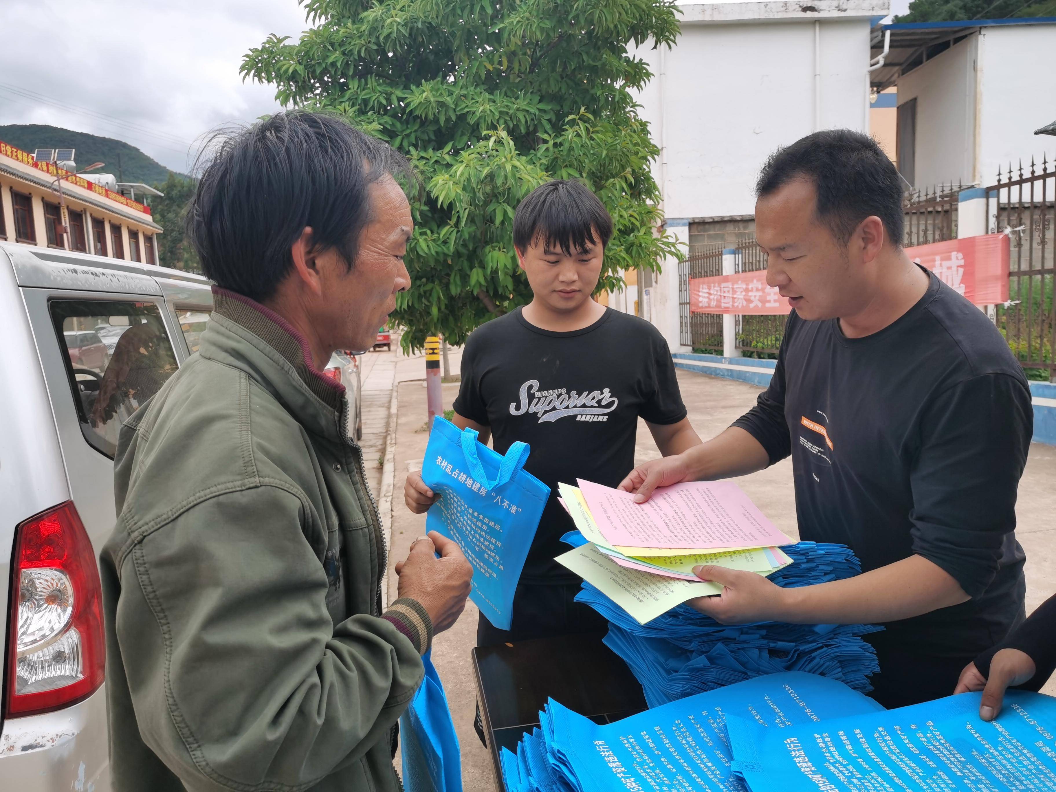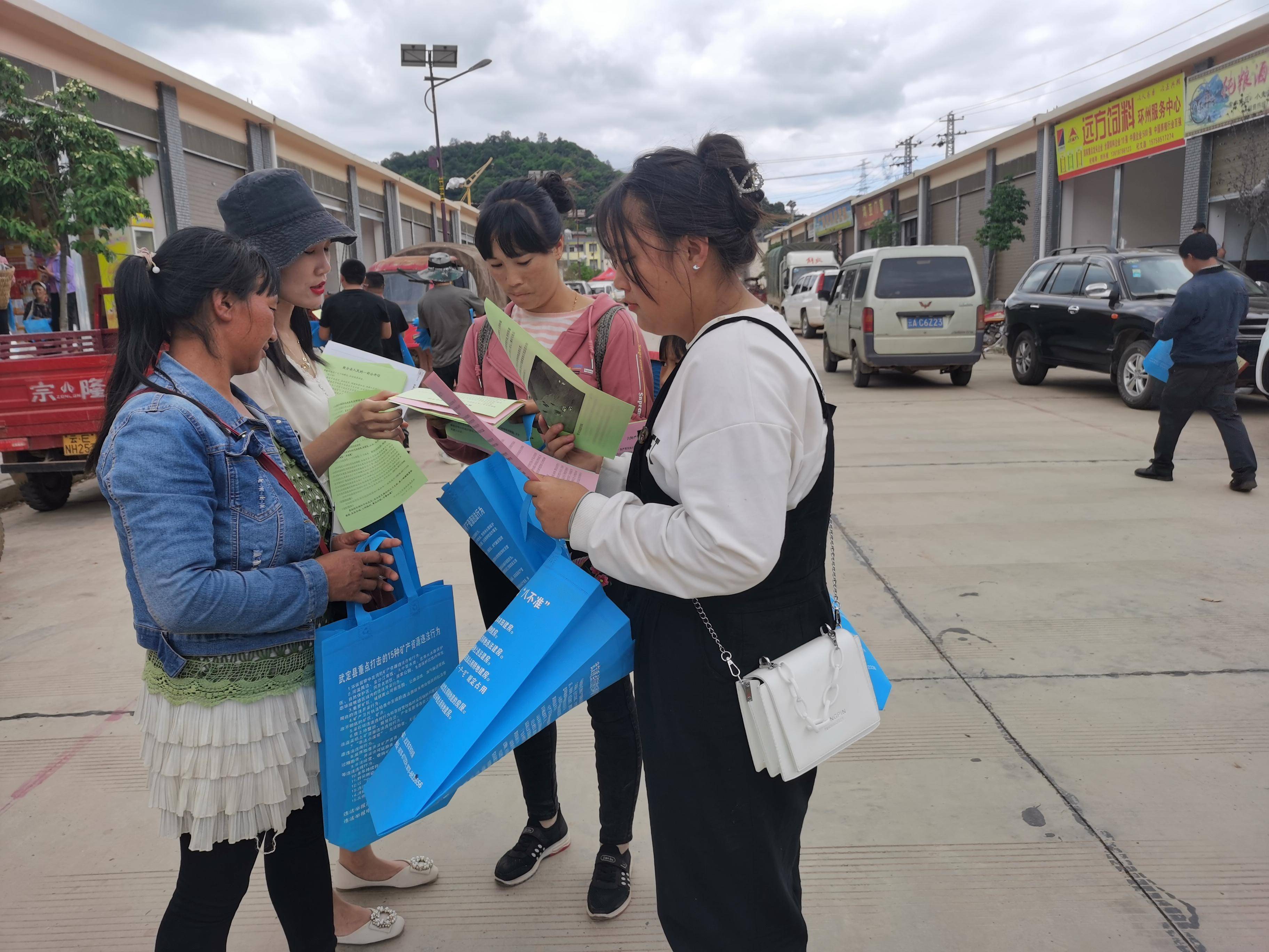 下午,环州自然资源所工作人员和综治办、司法所等单位站所一同到集镇上发放宣传提袋,遇到不识字的群众,工作人员会向其耐心解读相关政策。