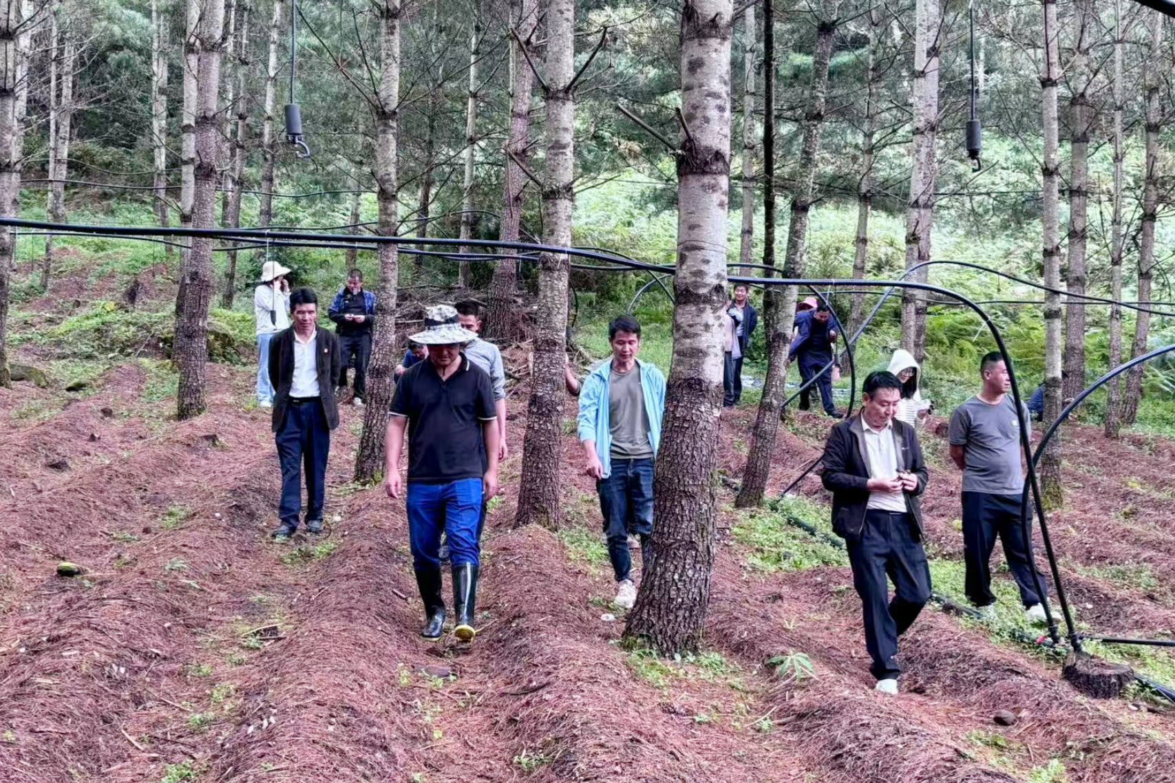 随后,一行人转至大黑山考察林下食用菌种植。管理人员介绍了食用菌的具体种植流程、每亩地的投入成本、实际产量等情况。此次实地调研,让大家在交流中学习产业发展经验,为乡村振兴汲取了鲜活的实践智慧。