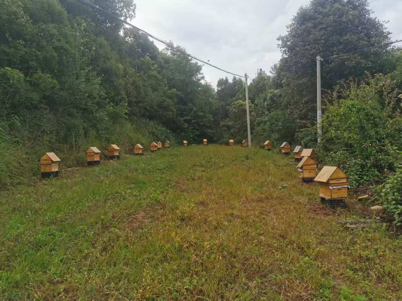 目前,第二期资金10万元也已到位。为确保二期项目顺利推进,8月19日,他贞村委会组织村干部、驻村工作队员、护林员及部分党员共30余人,开展蜂箱安置与基地扩建工作。一是在村委会后方空地安置蜂箱20余箱,该点位已进入养殖阶段;二是在起里谷岔路刺梨梁子路段山上新建一处养蜂基地。村“两委”与驻村队员全程带头作业,经过近5个小时共同努力,完成了基地前期建设工作。该基地预计可容纳蜂箱80余箱,待蜂箱全部安置完毕后即可正式开展养殖。