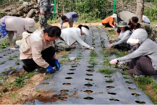 活动现场,乡农业农村发展服务中心农技员现场讲解当归苗期管护知识,表示林下种植中药材对环境要求高,及时除草既能避免杂草争夺养分,又能保持土壤湿度,为幼苗生长创造良好条件,同时提醒大家注意区分幼苗与杂草,避免误拔。党员干部们分工明确,两人一组、三人一队,有的蹲在垄沟边细心拔除杂草,避免其与当归苗争夺养分;有的轻扶歪斜的幼苗,小心翼翼为其培土固根;还有的相互配合检查地膜覆盖情况,确保保墒透气效果。大家干劲十足,田间地头一派忙碌而有序的景象。