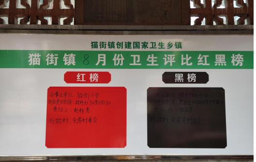 经过一个月的评比工作筹备与落实,猫街镇国家卫生乡镇创建8月卫生评比“红黑榜”放榜啦!
