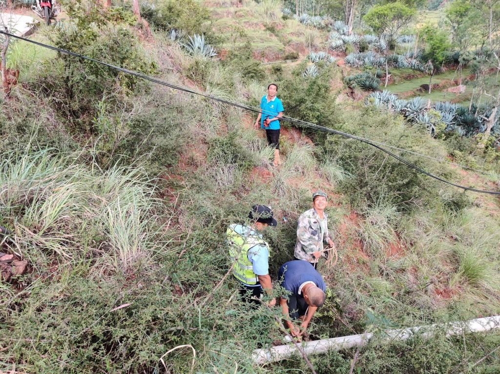 民警在详细了解现场情况后,观察到因为事故导致搭建电缆线的电线杆直接断裂一根,电缆线因为重力、拉力等原因,无法直接从车辆拖挂处分离,强行分离可能导致电缆线直接扯断并再次将剩余电线杆拉扯倒塌引发更严重的事故。随后,民警、路过群众和乡政府退伍军人小张会同电信部门工作人员同心协力想办法、出力气,制定了详细的救援方案,一起解救被困大货车。