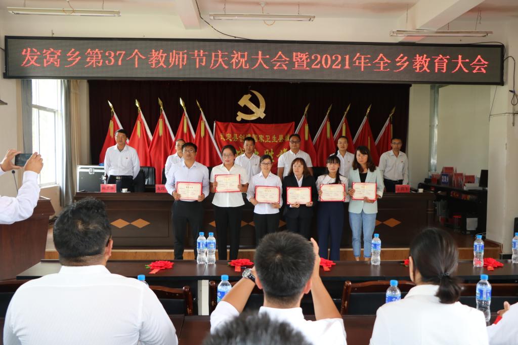 为庆祝人民教师的节日,表扬奖励发窝乡教育战线上涌现出的先进个人,进一步推动全社会形成尊师重教的良好风尚,9月9日,发窝乡召开教师节庆祝大会暨全乡教育大会,表彰优秀教师20名、优秀班主任16名、先进教育工作者14名。乡党委副书记、乡长潘在华出席会议并讲话,副乡长龙珍秀主持会议。