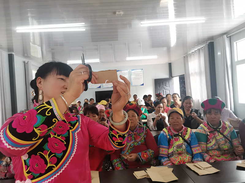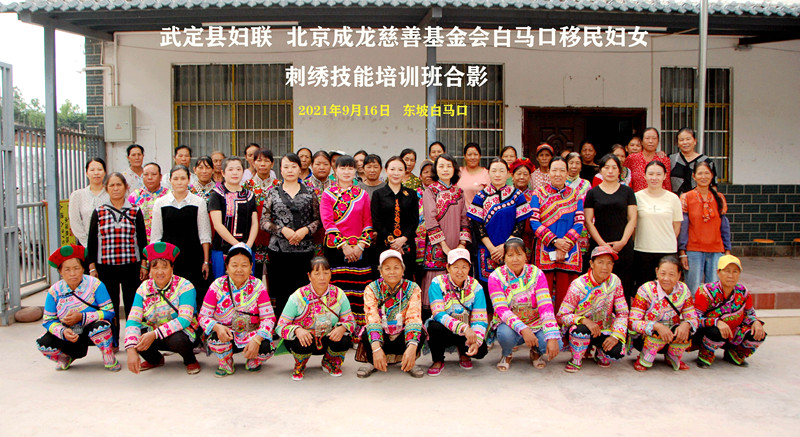 近日,武定县妇女联合会与北京成龙慈善基金会在武定县东坡乡白马口移民指挥部开展了妇女刺绣技能培训。这是武定县为移民群众开展的实用技能培训中的一次。
