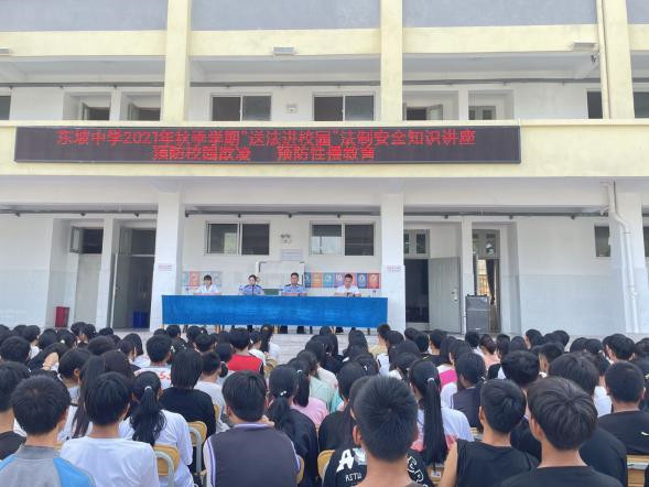 营造法治宣传氛围。加强法治宣传力度,增强群众法律意识。9月15日,联合派出所、卫生院到东坡中学开展2021年秋季学期“送法进校园”活动,开展预防未成年人犯罪、电信诈骗、禁毒、防邪等宣传,同学们认真听讲、积极讨论,受到了全体师生的热烈欢迎。并向群众发放《中华人民共和国民法典》精选、预防网络诈骗、扫黑除恶等宣传手册,耐心细致解答群众法律咨询,引导群众遇事找法,解决问题靠法,提升群众遵规守纪、知法守法的意识。共发放宣传资料600余份,解答群众咨询20多人次。