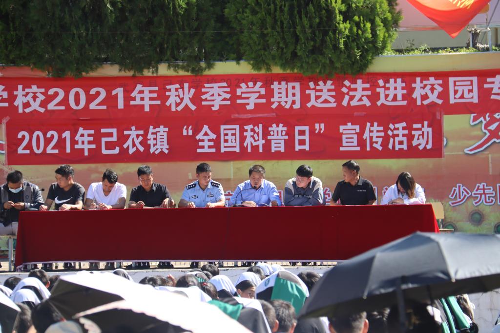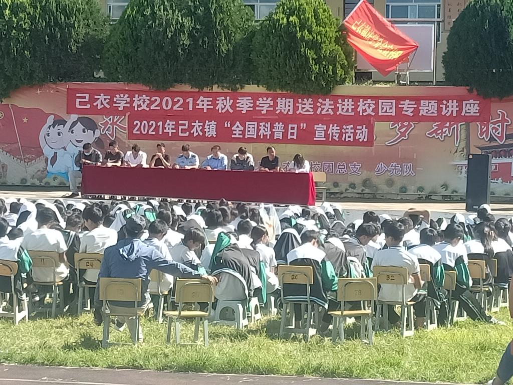 为加强辖区校园安全生产宣传教育,向广师生普及安全知识技能。2021年9月29日,己衣镇派出所、农业农村服务中心、司法所、应急管理与安监站一行人到己衣镇己衣中学,举办安全生产宣传教育“进校园”活动。