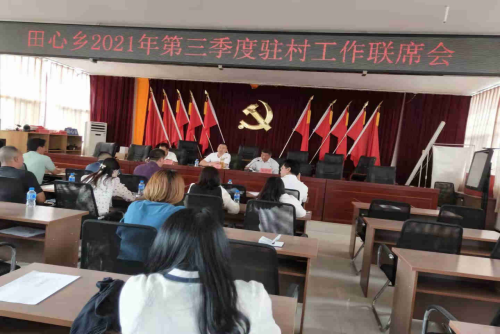 10月5日下午2:30,田心乡召开第三季度驻村工作联席会议,乡党委书记曹吉、乡党委副书记盛宏志、7个村委会驻村工作队长、第一书记及全体驻村工作队员参加了会议,会议由乡党委书记曹吉主持。