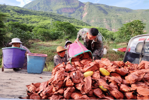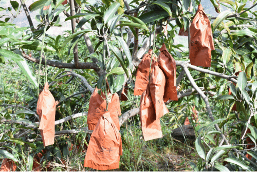 得天独厚的自然条件,是田心乡发展芒果种植产业的“先天优势”。芒果种植基地地处田心乡干热河谷气候区,夏秋季节长,全年无霜,早晚温差大,芒果树种植在海拔1400米的缓坡地带,光照充足、排水性好,非常适合芒果生长。基地占地面积达200余亩,涵盖凯特、鹰嘴芒、象牙芒3个优质品种。得益于科学的种植管理和适宜的气候条件,今年基地芒果产量再创新高。