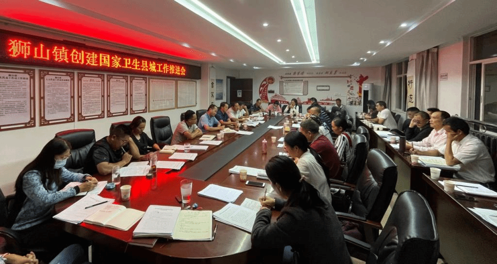 2021年10月8日晚,狮山镇召开创建国家卫生县城工作推进会,分析研判当前存在问题,研究部署下步重点工作。会议由镇党委副书记、镇人民政府镇长陈会文同志主持。镇党政班子成员、五办六中心一所负责人、“9+4”村(社区)党总支书记、镇创卫办全体工作人员共计40余人参加会议。