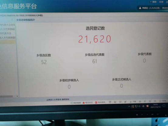 镇换届选举工作部署后,立即安排各村组织所有选区领导小组成员,进行业务培训,熟悉选举程序和具体要求,牢记选举的法定程序、公告日期等重要环节,对各选区初步登记的选民进行讨论审核。在对换届系统操作员进行业务培训时,再次对各村选民登记情况进行核查,审核一个选区,录入一个选区。截至10月19日,全镇15个村委会52个选区21620人全部登记完成并录入人大选举任免信息服务平台。