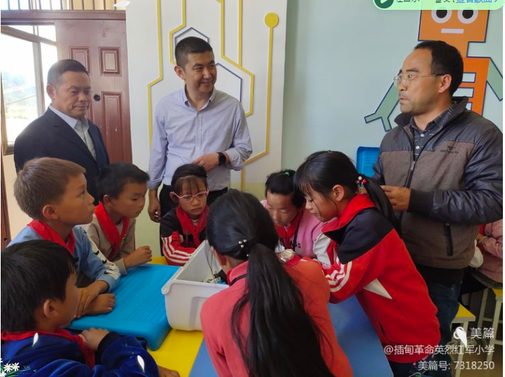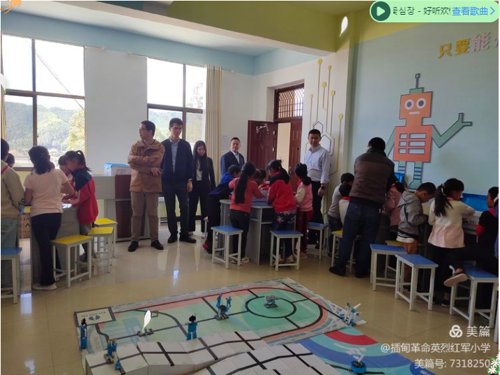 杨副县长及招商银行总行一行首先来到插甸革命英烈红军小学,对学校的“梦想教室”、“创客机器人教室”课程开展情况进行深入了解,并对“学校学生浴室”进行实地考察。