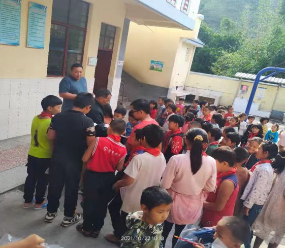 2021年10月27日,武定县卫生健康局驻东坡乡庄房村委会工作队到庄房小学开展“奉献爱心 情满校园”公益捐赠活动,庄房小学共80余名师生参加此次活动。