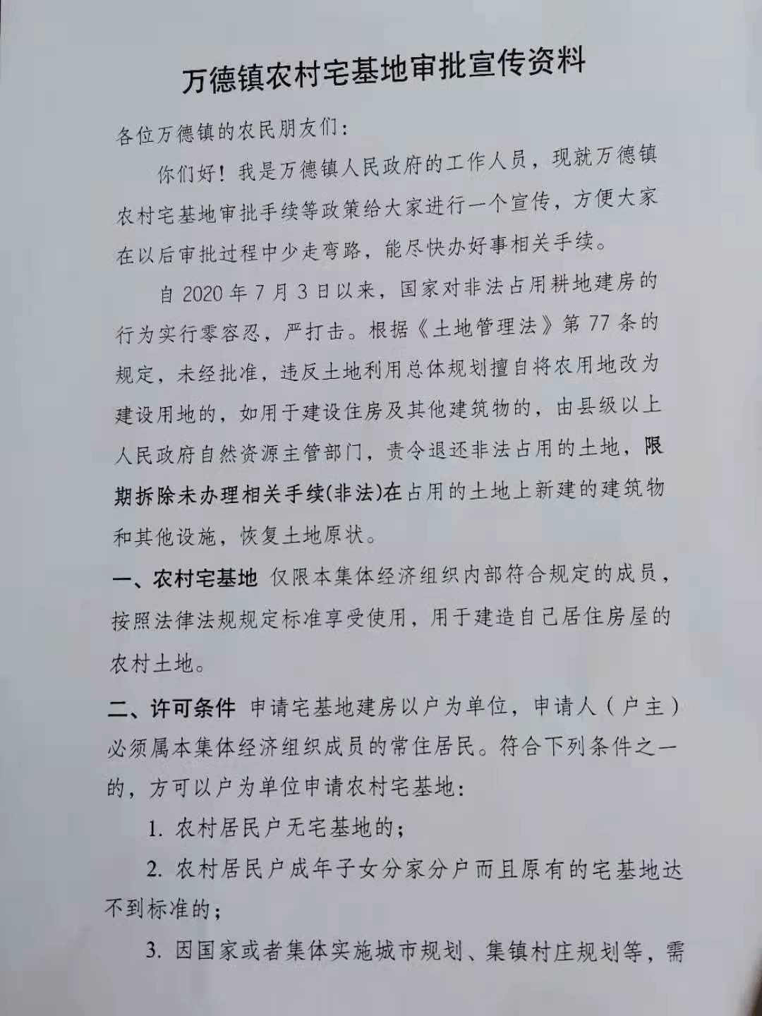 为切实保障好农户居住权益,严守耕地保护红线,切实推进农村宅基地审批管理规范化健康发展,进一步推进和规范农村宅基地审批各项工作开展,万德镇将农村宅基地审批政策录制成音频资料,通过应急广播定时播放到村村寨寨,确保政策家喻户晓,进而形成农村建房需要先审批后建盖的强烈共识。