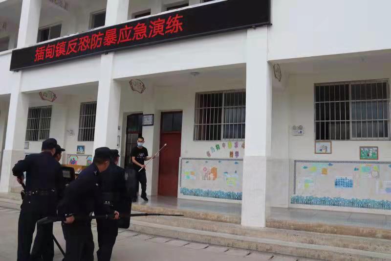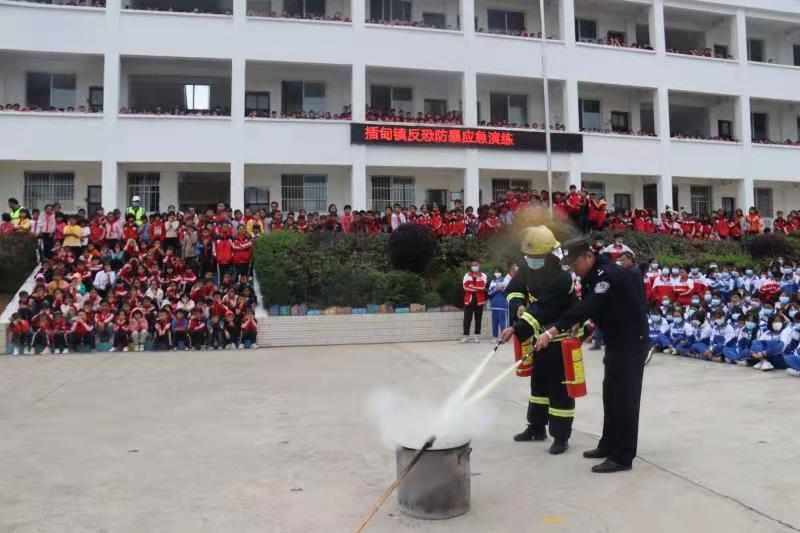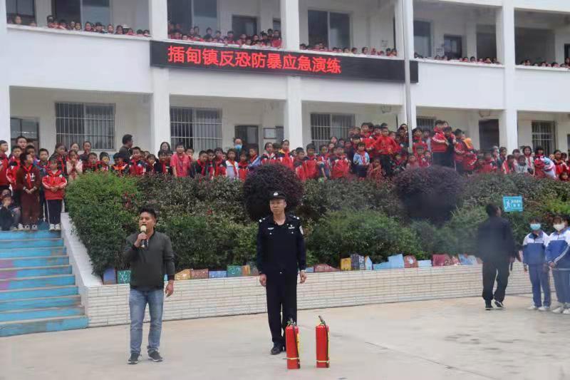 10月28日下午3时,插甸镇党委、政府组织相关职能部门在插甸希望小学开展插甸镇反恐防暴及消防应急演练,政府主要领导、各所(办、中心)负责人、中小学全体师生、加油站等重点单位负责人共计1500余人参与此次演练活动。