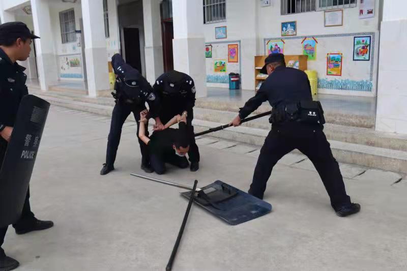 演练共有三个流程:一是模拟一名暴徒趁机闯入校园,并扬言要伤害学生的突发事件,插甸希望小学的保安人员和正在上课的师生训练有素的应对、插甸派出所民警、辅警配合默契、处置有力,迎来在场人员的喝彩和掌声;二是设置火情利用(干粉)灭火器灭火的情景演练,政府专职消防队队员现场处置火情,在处置过程中副镇长、派出所所长李志向参与人员讲解灭火器的使用方法和注意事项,并邀请在场人员学习体验,获得大家的一致好评;三是镇党委副书记、政法委员李葆文对此次演练做小结,宣布此次演练活动顺利完成,并向在场人员强调安全防范的重要性和必要性,最后李志同志再次向大家宣传了反恐防暴、消防、电信诈骗等安全防范知识。