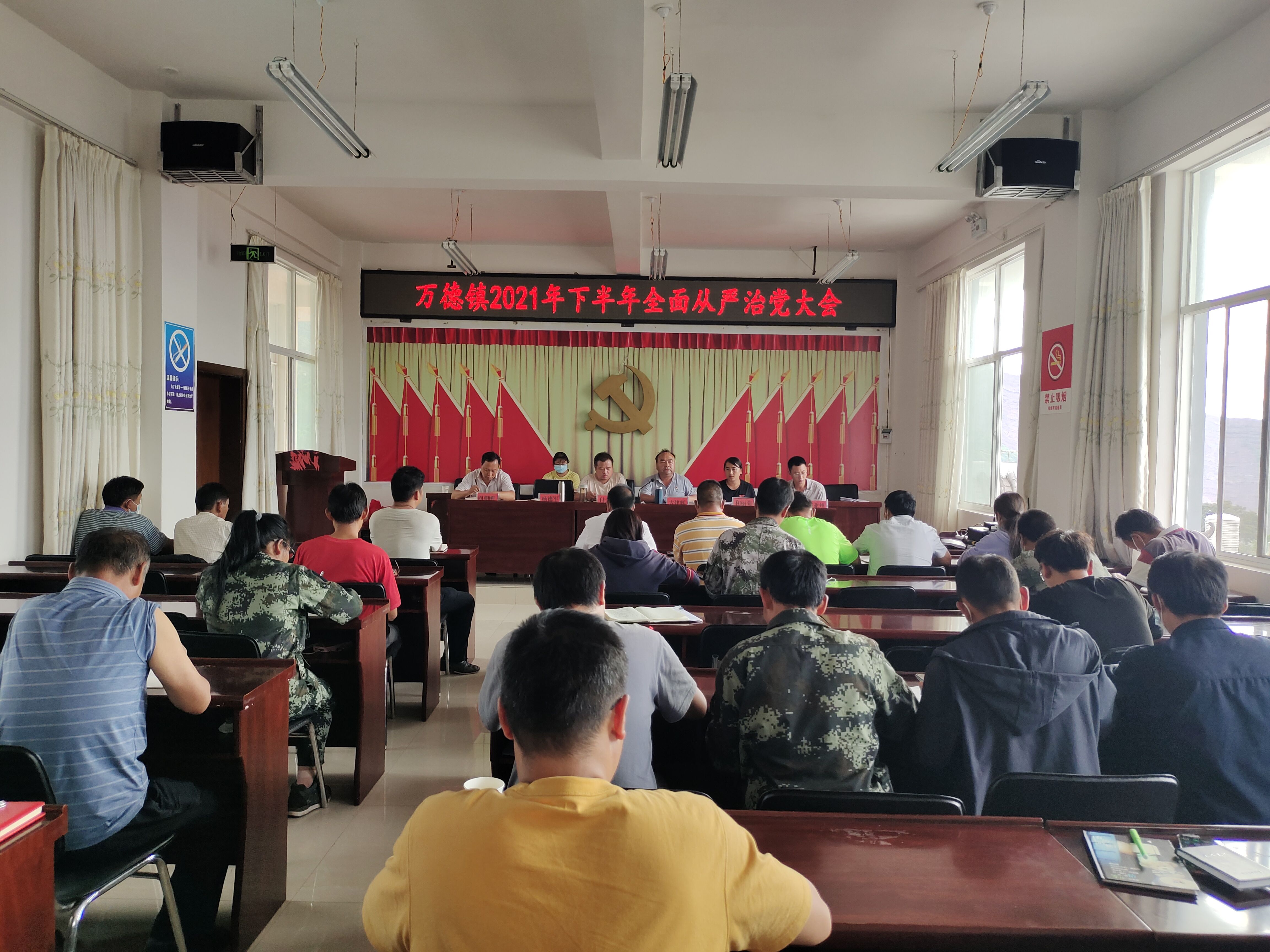 8月25日下午,万德镇召开2021下半年全面从严治党大会,深入学习习近平总书记在庆祝中国共产党成立100周年大会上的重要讲话精神,扎实推进党史学习教育,持续推进全面从严治党向纵深发展。镇党委书记古建辉出席会议并讲话,党政班子成员,8个村党总支书记、驻村第一书记、村监委主任及镇党建办、纪委办全体工作人员参加会议。