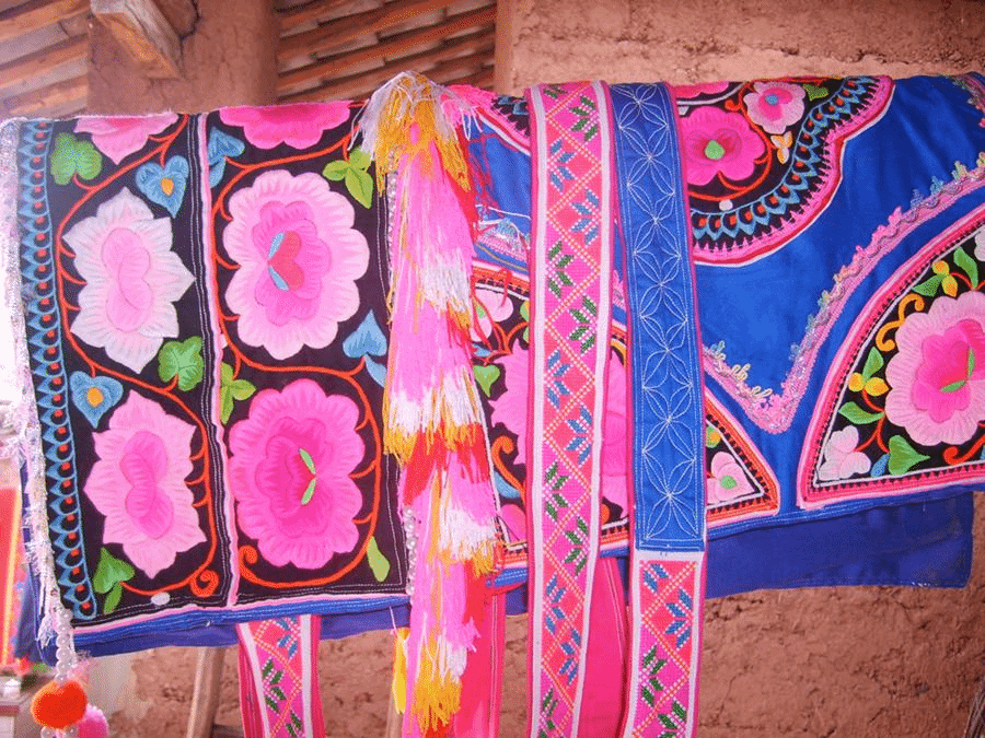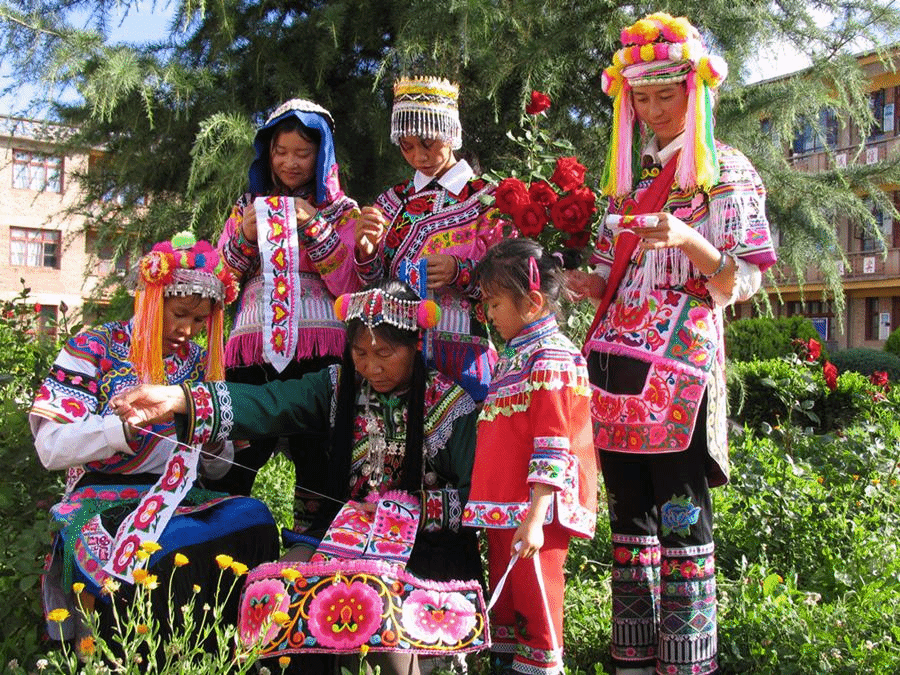 彝族服饰文化也是少数民族文化的一个重要组成部分,彝族乃苏支系红彝人传说是大理王族绣女的后代,红彝女大多擅长刺绣。其服饰的基调是蓝底红花,全身上下都绣以各种各样的红花图案,色彩明艳夺目,因此而得名。