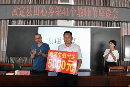 9月8日,在第41个教师节即将到来之际,县委常委、县委办主任、田心乡党委第一书记李文武带队到田心乡开展教师节走访慰问,向辛勤耕耘、无私奉献在基层教学一线的全体教师们致以崇高的敬意和节日的祝福,并为田心学校送上教师节慰问金。县教育体育局副局长朱建琼、田心乡党委书记罗永安、武定县田心学校全体教职工参加座谈会。