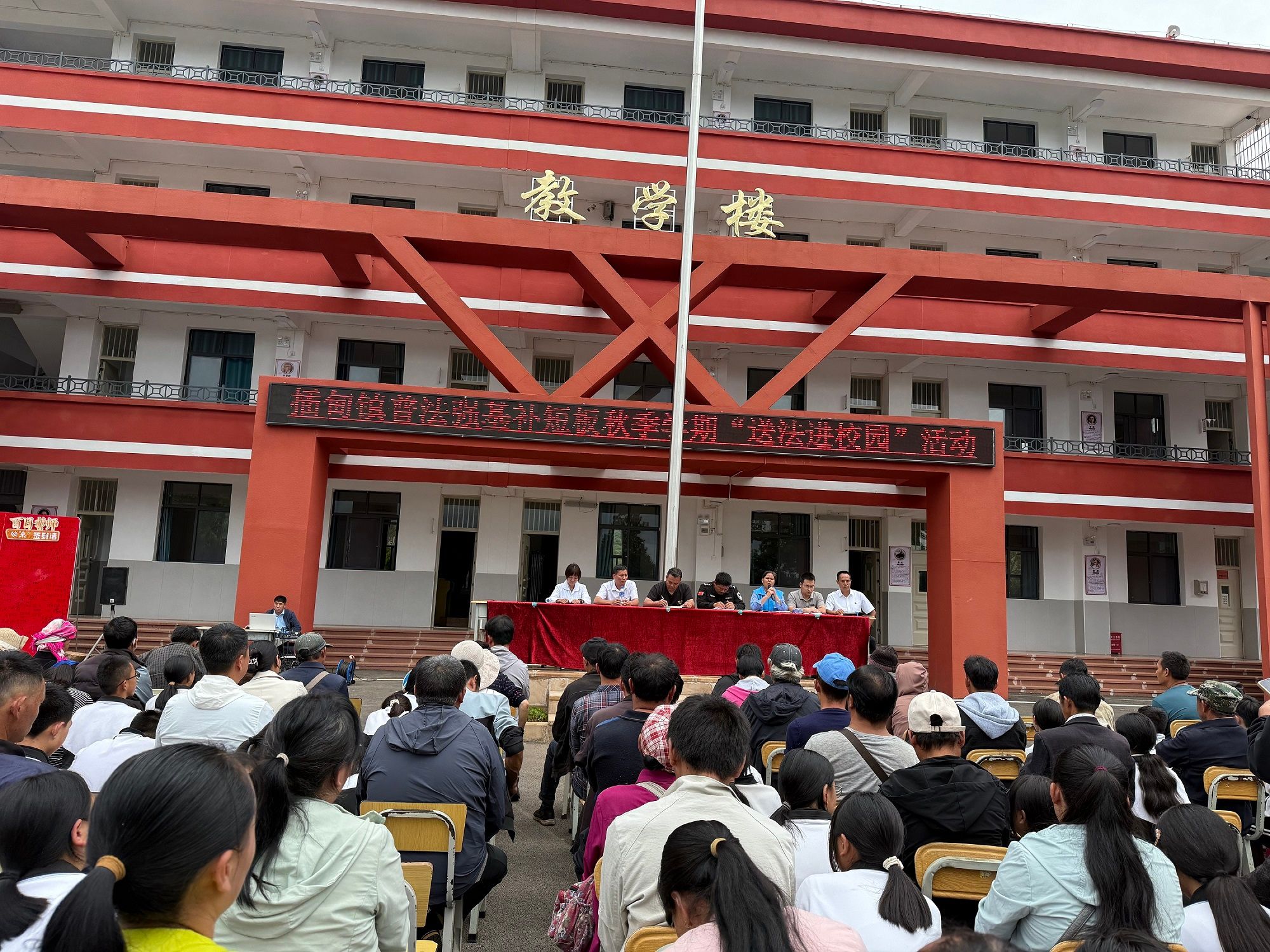 为切实增强未成年人法治意识,有效预防校园欺凌,营造安全、和谐的校园环境,2025年9月12日下午,插甸司法所联合镇派出所、法治平安办、卫生院到中学开展“拒绝欺凌,共同维护校园安全”主题送法进校园宣传活动,全校1000余名师生及家长参与活动。