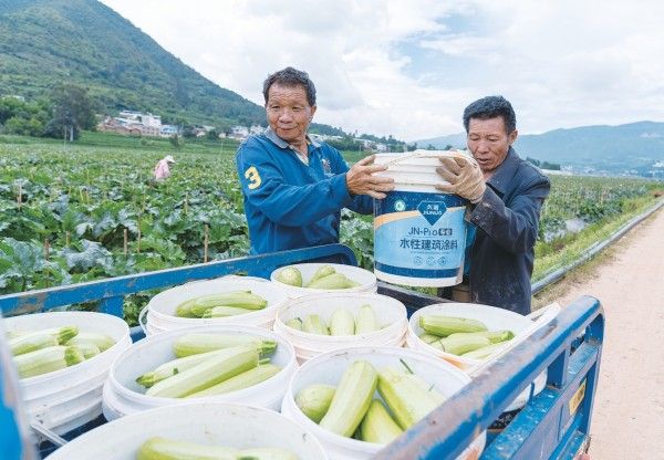 基地负责人李金富说:“我们通过安德村党总支的招商引荐,三家人联合在这里流转土地种植西葫芦。今年雨水多,镇上的农业技术人员也及时到基地传授相关病虫害防治知识,村里还保障用工,让我们种着也安心。基地从7月中旬开始采摘,每天能产出七八吨的新鲜西葫芦,采收期可持续两个多月。这些优质西葫芦主要销往昆明、呈贡、玉溪、通海等地,目前已销售了90多吨,预计年产值达315万余元。现在丰产期一天用工可达80余人,从5月份种下到现在已发放工人工资16万元,老百姓高兴我们也高兴,将来还打算种10年。”