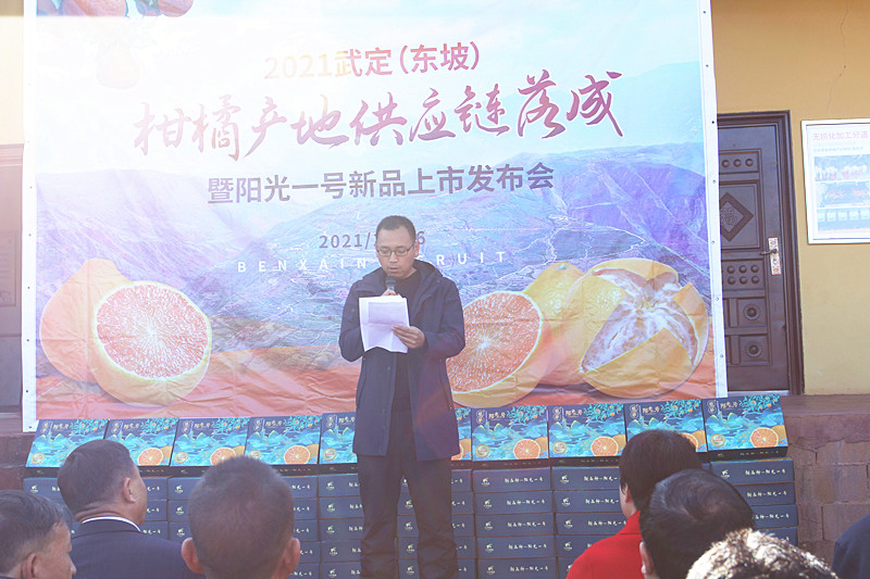 当天一大早,开园仪式现场便热闹非凡,空气中也仿佛氤氲着柑橘的香甜。来自全国各地的数十名果商、电子商务平台负责人、县乡领导、村民等齐聚,共同见证东坡柑橘产地供应链落成暨阳光一号新品上市这一重要时刻。在开园仪式上,中共东坡傣族乡党委书记文建华在致辞中说,武定柑橘产地供应链在东坡落成以及阳光一号新品上市,这不仅是柑橘产业基地的一件大事,也是东坡乡产业发展的一个里程碑,标志着东坡乡以柑橘为代表的产业发展从基地自产自销的初级模式走到了有完整供销体系的完整模式并逐步形成品牌效应,东坡产业发展迈向了一个更新的台阶。在下一步的工作中,东坡乡将继续秉承招商、稳商、富商的发展理念,强化协调和主动服务力度,积极打造全州最具特色的“阳光一号”生产基地,将柑橘产业链条扩大到其他经济作物,带动东坡乡花卉、冬早蔬菜、软籽石榴等更多产业发展。