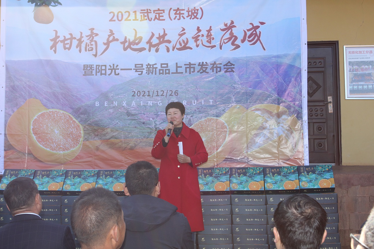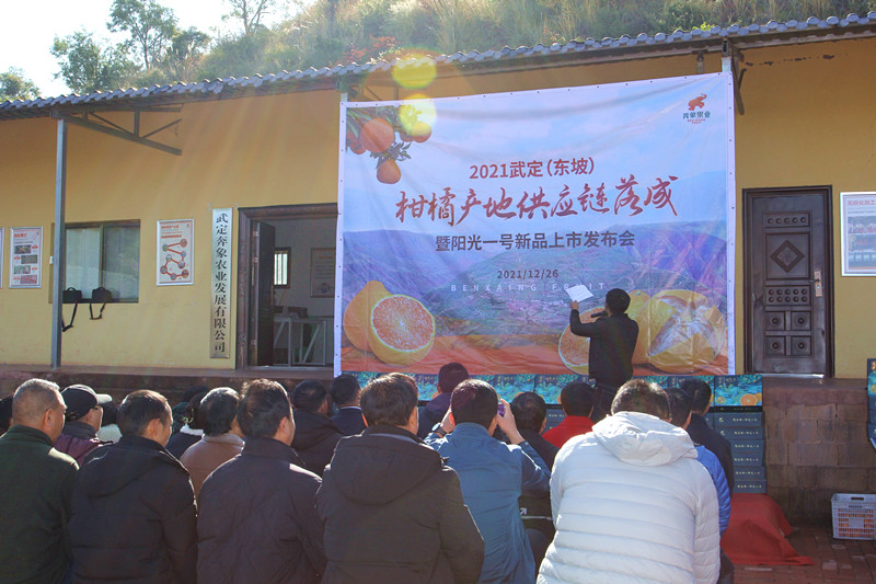 橘香阵阵,硕果累累。12月26日上午,“2021武定东坡柑橘产地供应链落成暨阳光一号新品上市发布会”在武定县东坡乡路基干村奔象果业基地举行,千亩“阳光一号”柑橘正式开园上市。