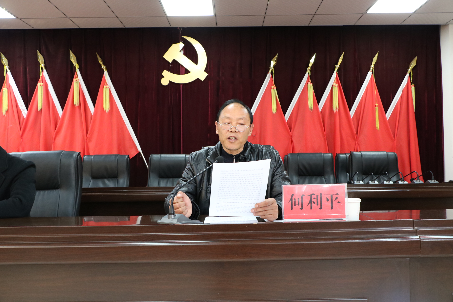 在全国上下深入学习宣传贯彻党的十九届六中全会精神之际,为进一步掀起学习贯彻热潮,推动发窝乡党史学习教育向纵深发展,按照武定县委统一安排部署,2022年1月3日,武定县委宣讲团成员、原县委老干部局局长、县委组织部四级调研员何利平同志为发窝乡党政班子成员,乡级机关全体干部职工,出席中国共产党发窝乡第九届代表大会第二次会议的全体代表和列席人员宣讲党的十九届六中全会精神。