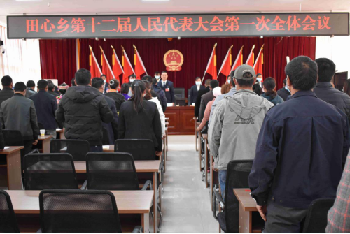 2022年1月5日下午2:00,田心乡第十二届人民代表大会第一次会议在庄严的《国歌》声中开幕。57名乡人大代表、21名列席人员参加会议。县人大常委会保留副处级待遇干部、县总工会主席、县委赴田心乡换届指导组组长鲁自福到会作指导讲话。