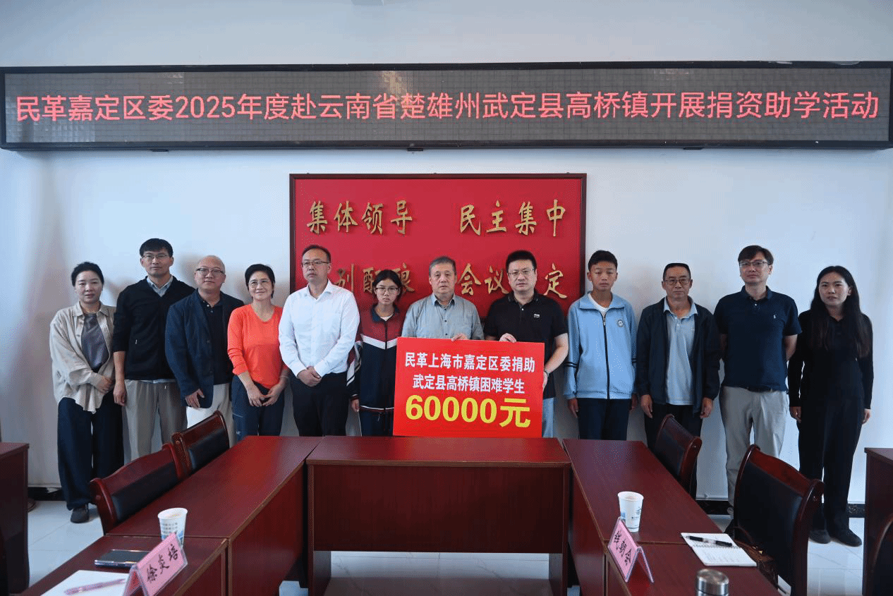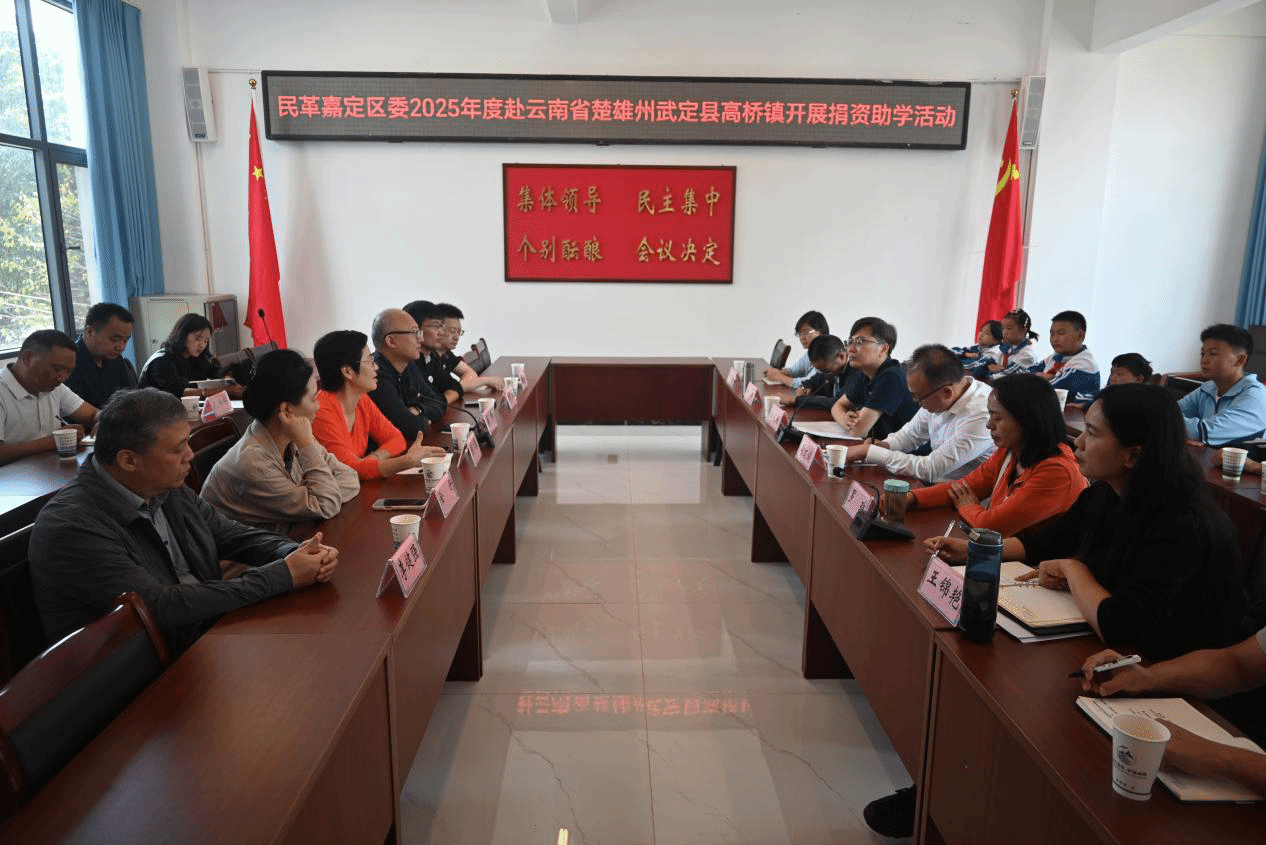 2025年10月15日上午,民革上海嘉定区委赴高桥镇开展捐资助学活动,民革上海嘉定区委、民革楚雄州委、县人民政府、县委统战部、县教育体育局、高桥镇党委、政府相关领导和高桥镇中心学校负责人、受助学生代表共活动参加。活动由县委常委、县人民政府副县长徐建荣主持。