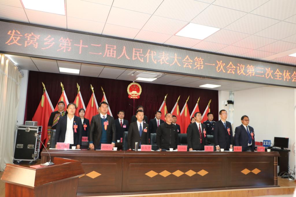 经过全体代表和与会人员的共同努力,伴随着庄严的《国歌》,发窝乡第十二届人民代表大会第一次会议顺利完成了各项议程,正式落下了帷幕。