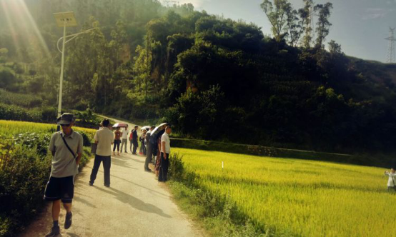 2018年8月31日9时,县农业局植保推广中心的技术人员及全县十一个乡镇农技中心的代表到乌龙村委乌龙小村考察优质水稻种植成效。